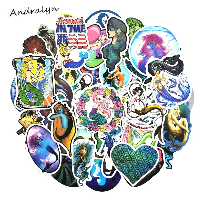 معلومات اضافية 50 قطعة/الحزمة حورية البحر الكرتون ملصقات للثلاجة لوح التزلج دراجة نارية خزانة الأمتعة محمول المحيط الجمال اللعب ملصقا