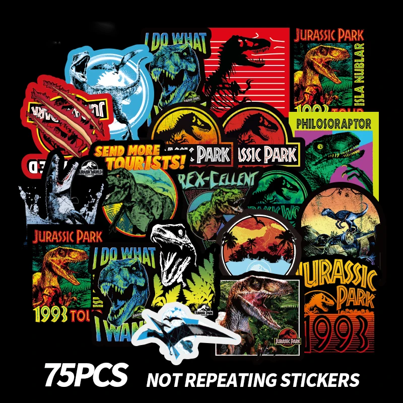 معرض من 75 قطعة الجوراسي بارك ملصقات لعب للأطفال الحيوان مضحك ملصقا صائق الديكور الجوراسي بارك إلى كمبيوتر محمول Skateboard حقيبة